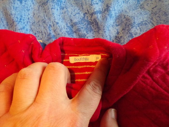 Gilet rouge brillant taille 6 mois et de marque Bout'chou. Très bon état.