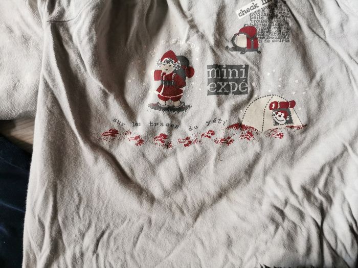 Lot pyjamas 4 ans 1 haut a de legere taches voir photo 1 haut a une tache a la manche voir photo Le haut avec l'ours l'image et un peu abîmé a cause de la machine