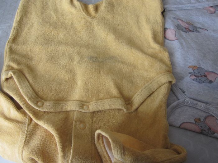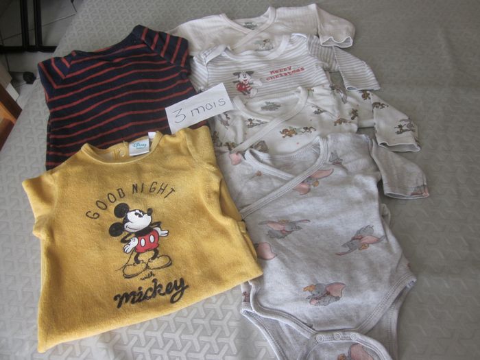 3 m, pyjama velours (petites tâches au dos) + combi sans pied + 4 bodies ml (légère auréole sur un), disney ...