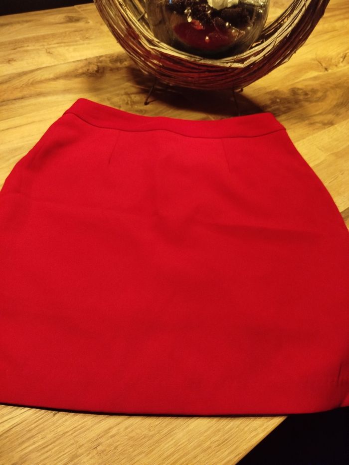 Vends jupe courte rouge avec fermeture éclair sur le derrière. Très peu portée Taille 36