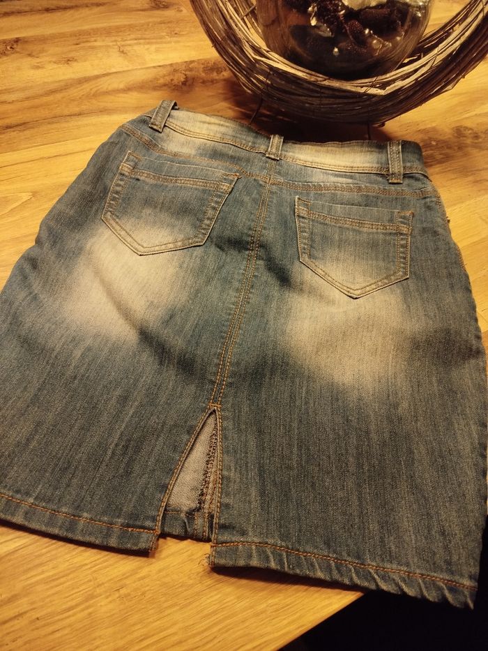 Vends très jolie jupe en jean super fashion stretch avec petite fente sur le derrière. Taille 36 Marque :Naturale