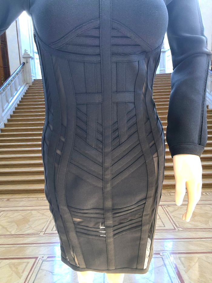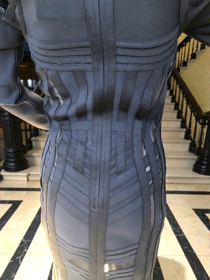 LADYCE - NEW - ROBE TYPE BANDAGES NOIRE DÉTAILS VOILE & LIGNES GÉOMETRIQUES M/L - photo numéro 8