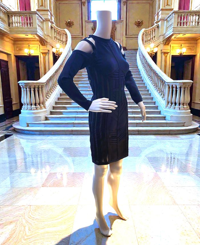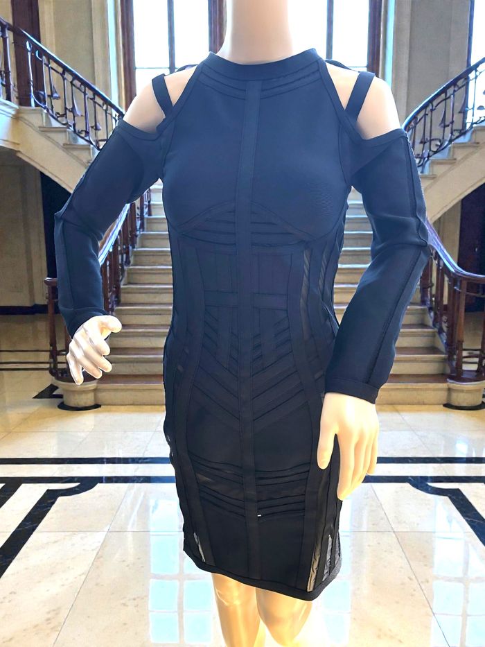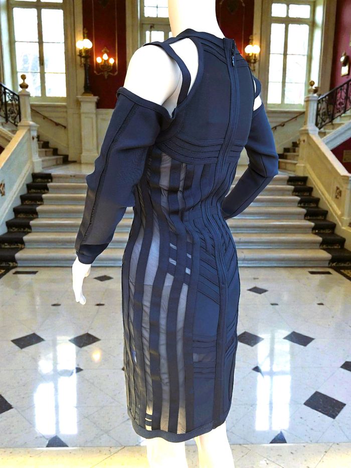 LADYCE - NEW - ROBE TYPE BANDAGES NOIRE DÉTAILS VOILE & LIGNES GÉOMETRIQUES M/L - photo numéro 5