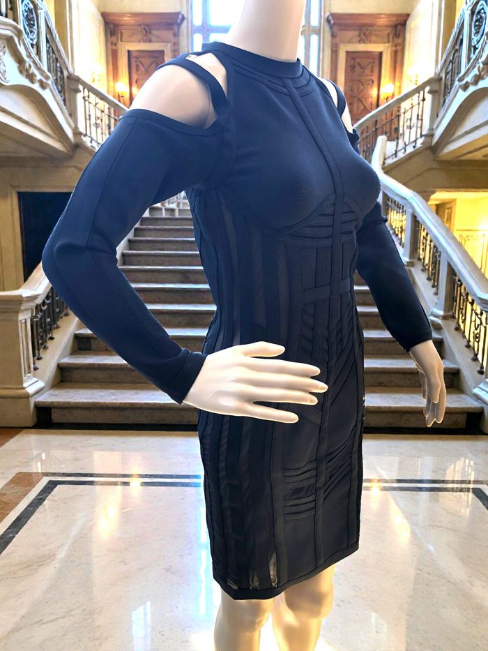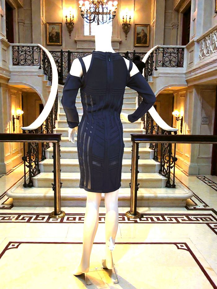 LADYCE - NEW - ROBE TYPE BANDAGES NOIRE DÉTAILS VOILE & LIGNES GÉOMETRIQUES M/L - photo numéro 10
