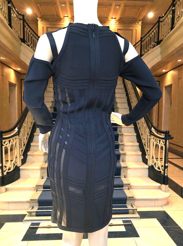 LADYCE - NEW - ROBE TYPE BANDAGES NOIRE DÉTAILS VOILE & LIGNES GÉOMETRIQUES M/L - photo numéro 4