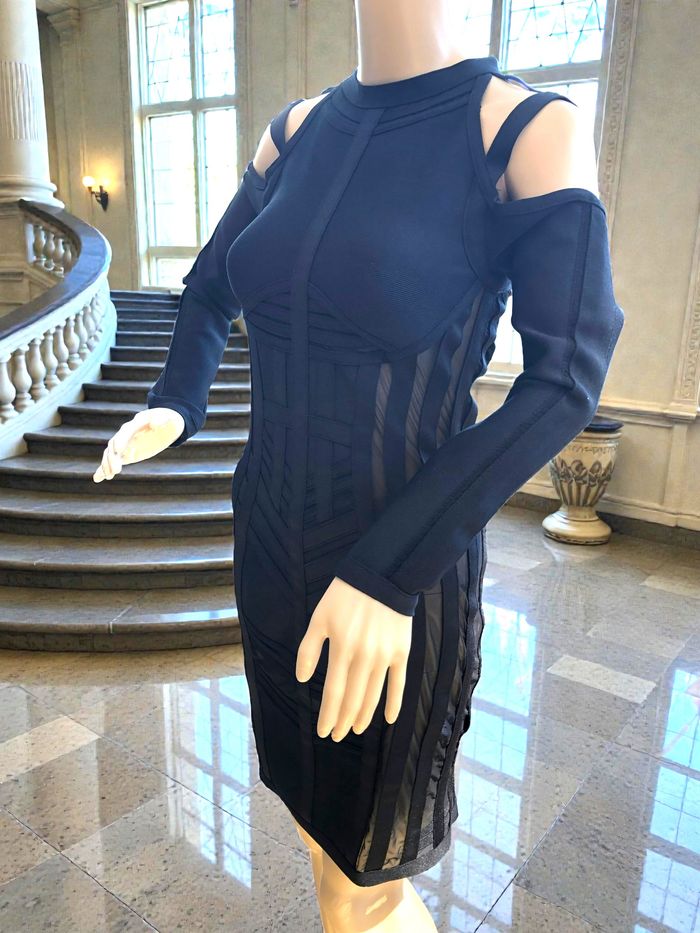 LADYCE - NEW - ROBE TYPE BANDAGES NOIRE DÉTAILS VOILE & LIGNES GÉOMETRIQUES M/L - photo numéro 2