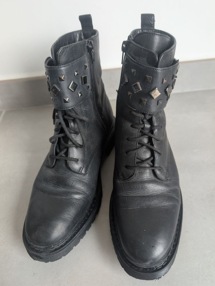 Bottines montantes en cuir véritable souple, intérieur bien chaud, détails cloutés, chaussures entretenus en très bon état , pointure 38