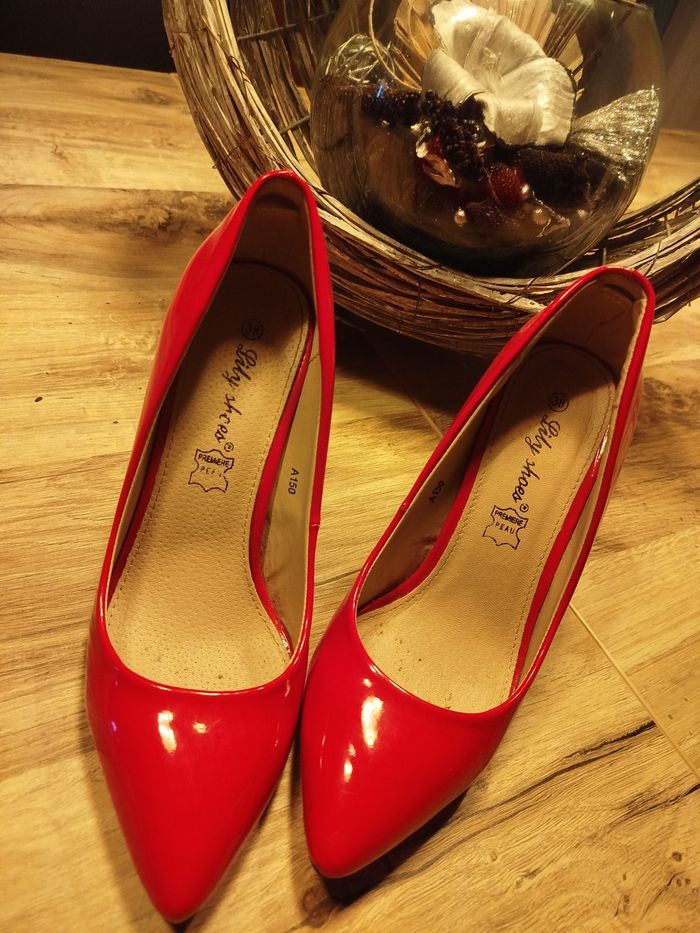 Vends escarpins rouge vernis hyper élégant. Talons: 11cm Marque : Lily rose Taille : 38
