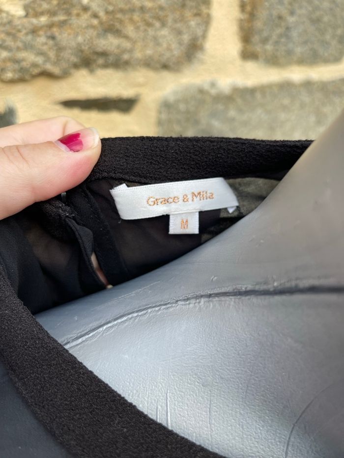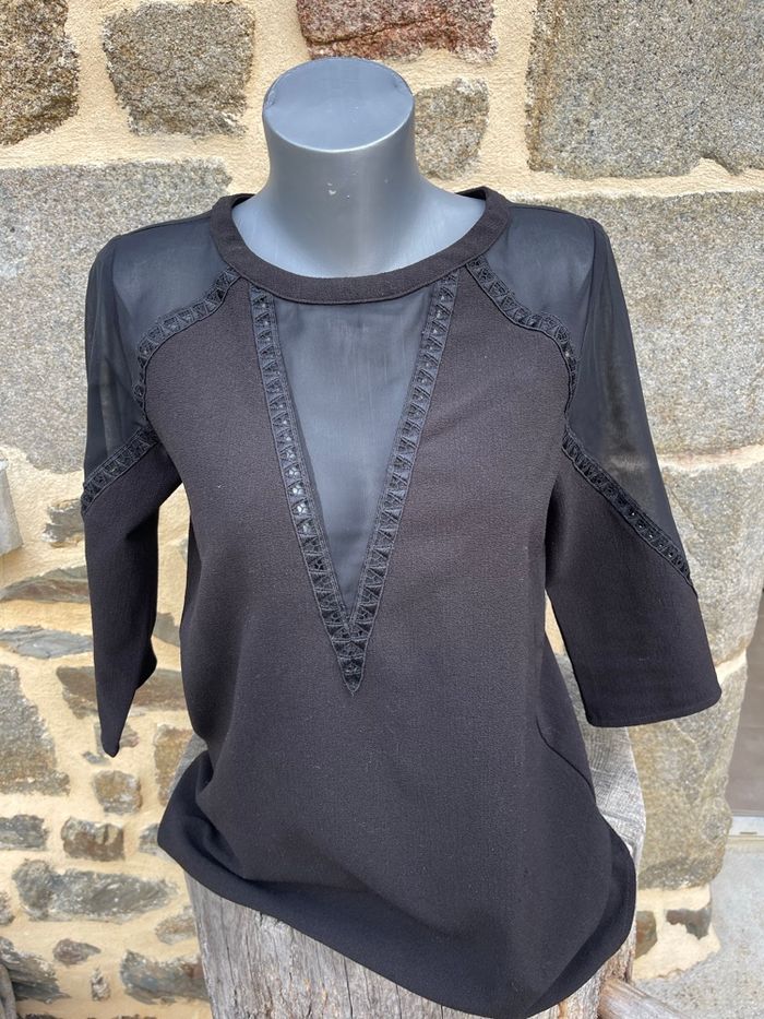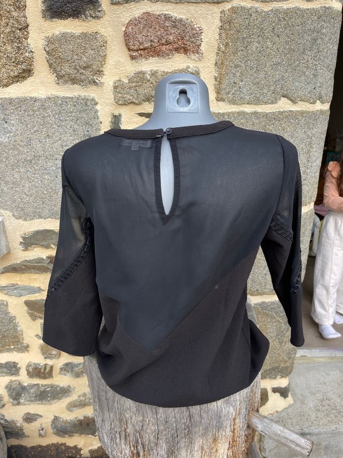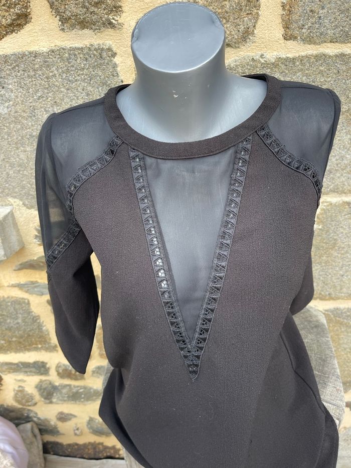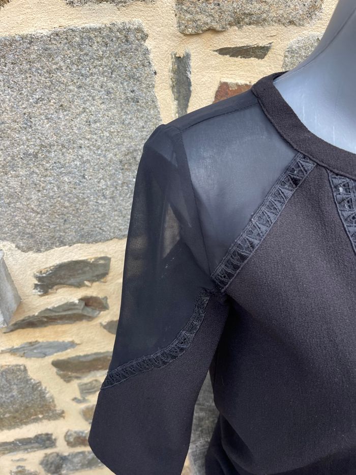 Blouse noir à manche 3/4 transparence sur le devant au niveau de la poitrine et sur les manches Taille M Très bonne état Grace et Mila