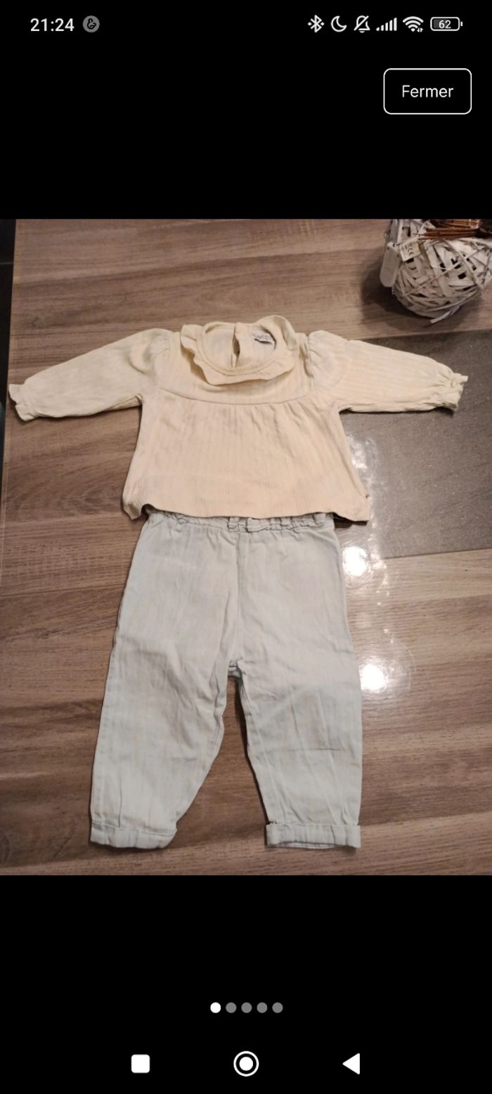 Ensemble fille 6 mois Pantalon + haut manches longues Le haut est un peu taché au niveau du col.