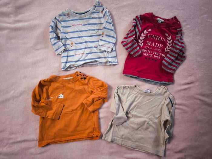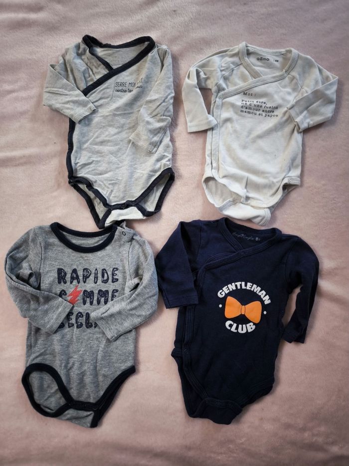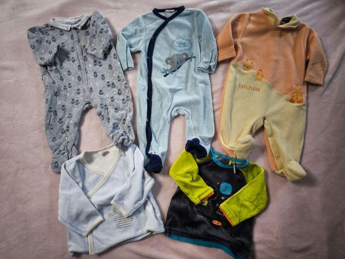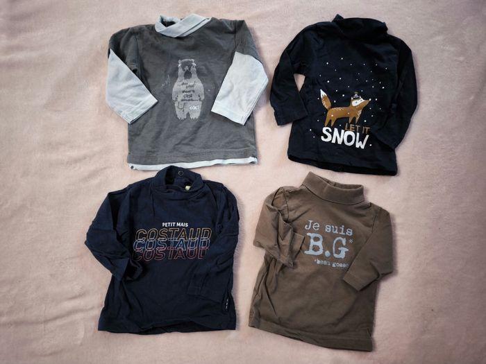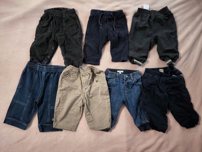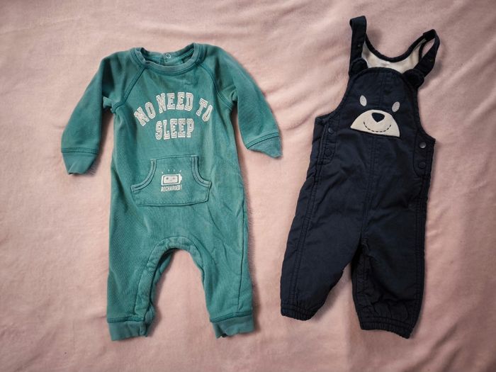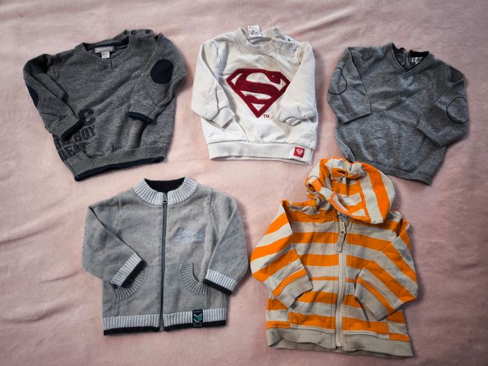 Joli lot hiver garçon Comprenant : - 2 salopettes - 7 pantalons - 4 t-shirts manches longues avec petit col - 4 t-shirts manches longues - 3 pulls - 2 gilets - 4 bodies manches longues - 3 pyjamas 1 pièces - 2 hauts de pyjamas Tout en très bon état ormi le gilet gris qui bouloche