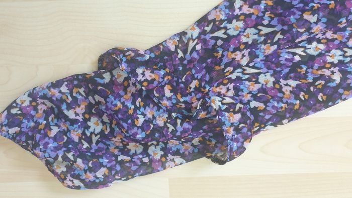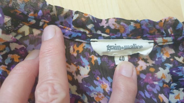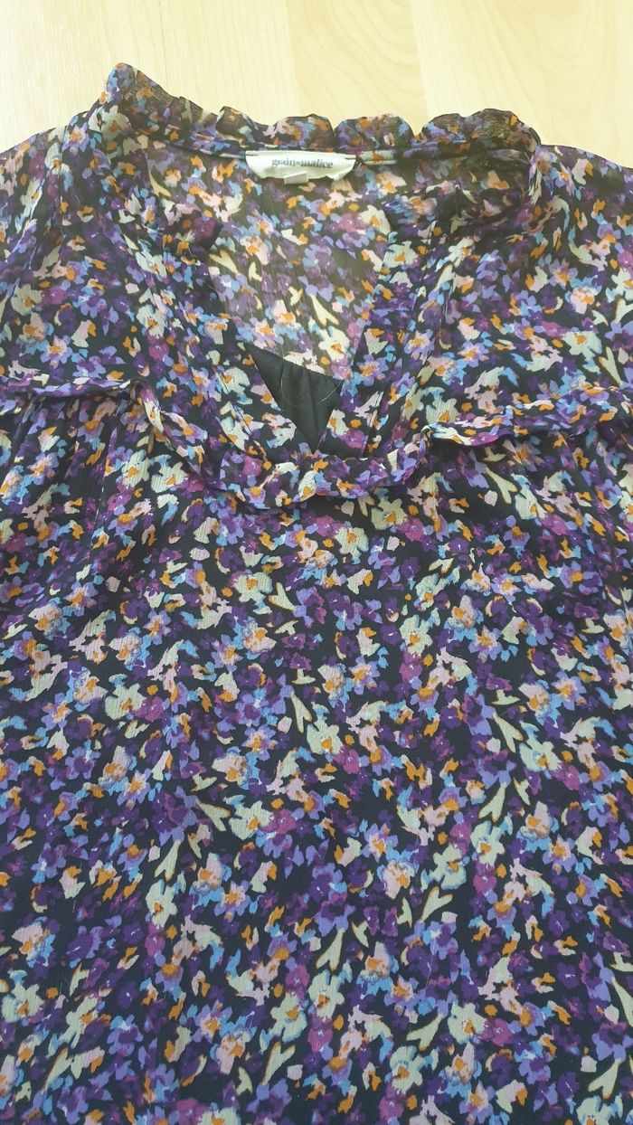 Blouse à longues manches, joli motif à petites fleurs. Petits volants aux épaules et dans le bas des manches.