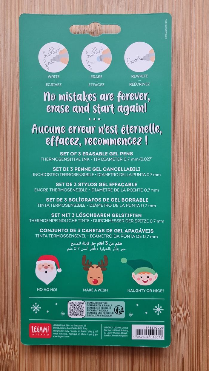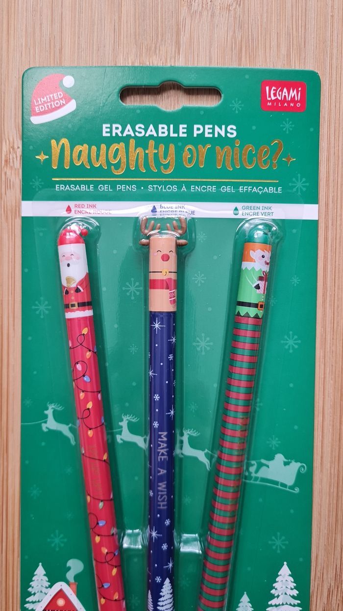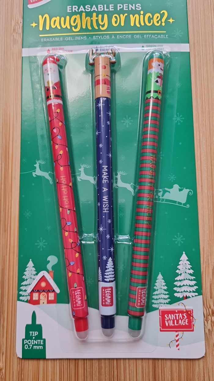 Legami Effaçable - NEUF = 3 Stylos - 1 Set Neuf Scellé -> 1 Stylo Renne de Noel 🫎 -> 1 Stylo Père Noel Rouge 🎅🏻 -> 1 Stylo Lutin de Noel de la Collection NOEL 2024 LIMITED EDITION Édition Plus Commercialisée Définitivement depuis + de 1 an déjà Neuf - Authentique LEGAMI Au besoin, nous avons toutes les éditions Legami effaçables et lovely friends qui existent depuis leurs débuts en 2020, toutes les éditions les plus recherchées, tout n'est pas encore en ligne, nous demander 🥰