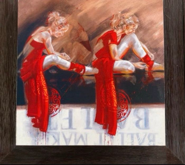 Deux tableaux de kitty meijering sur le thème de la danse Chaque tableaux mesure 38,5cm x 38,5 cm en incluant le contour bois