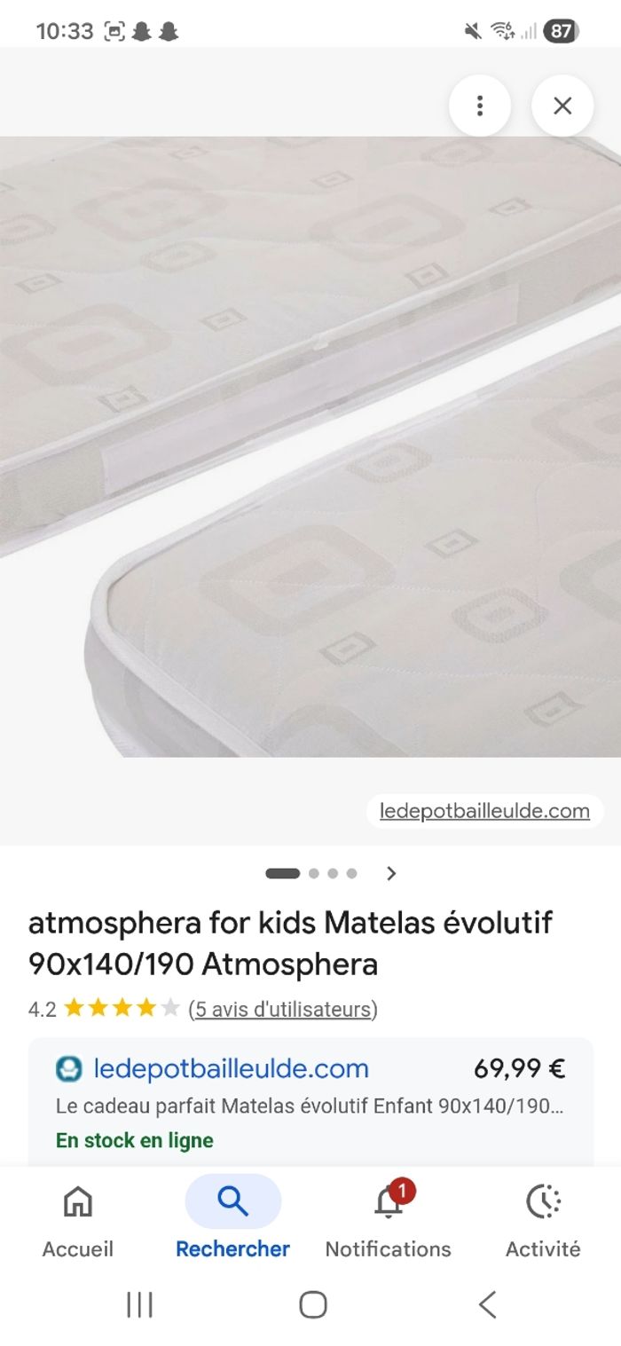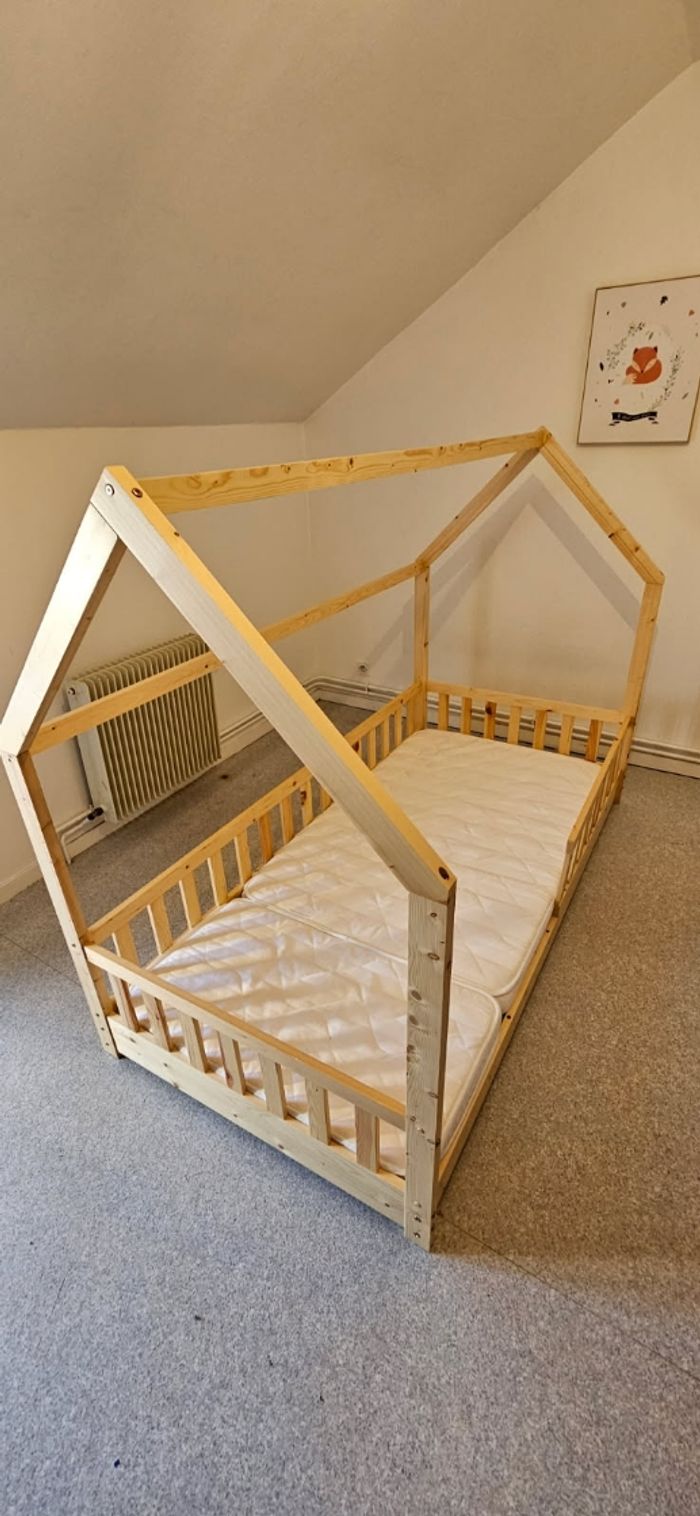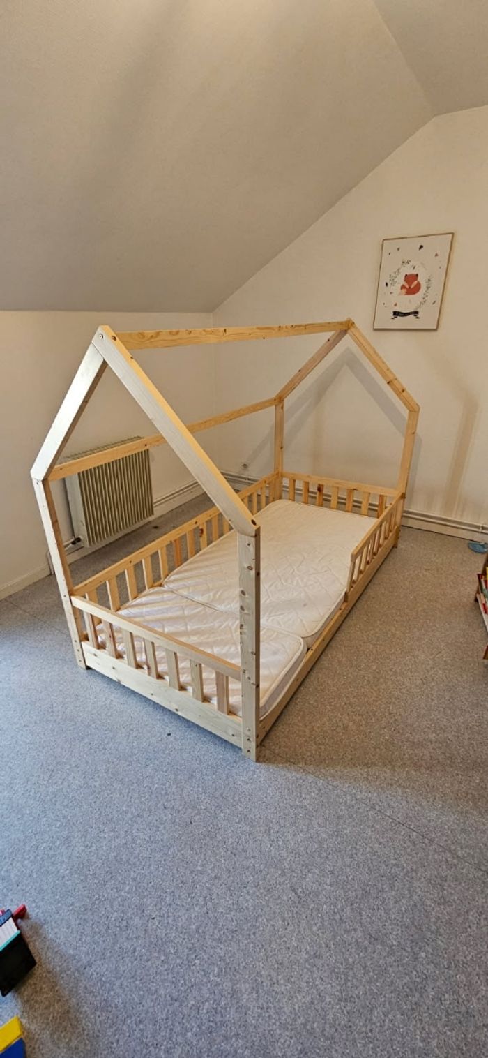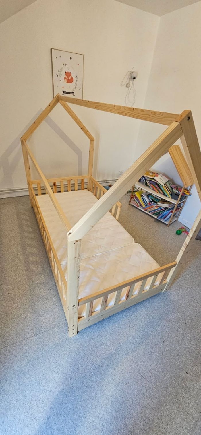 Lit en bon état voire très bon état et matelas ajustable 90 140 ou 190 cm en bon état car tâché d'un côté ( possibilité d'avoir une photo de celle ci je pense qu'elle est enlevable avec le bissel mais à la main compliqué).