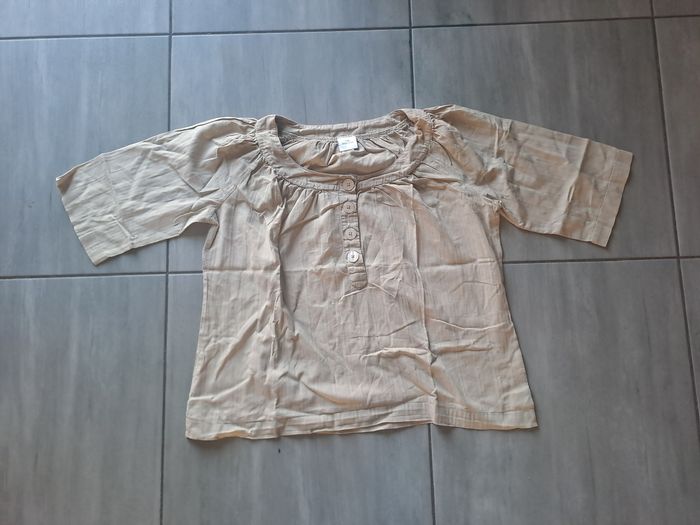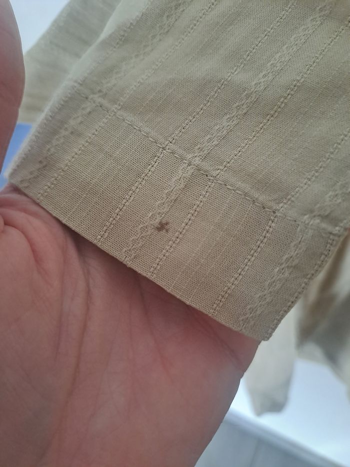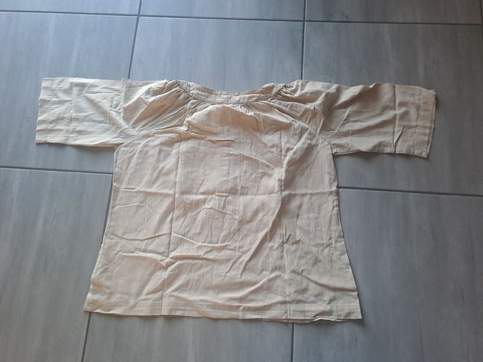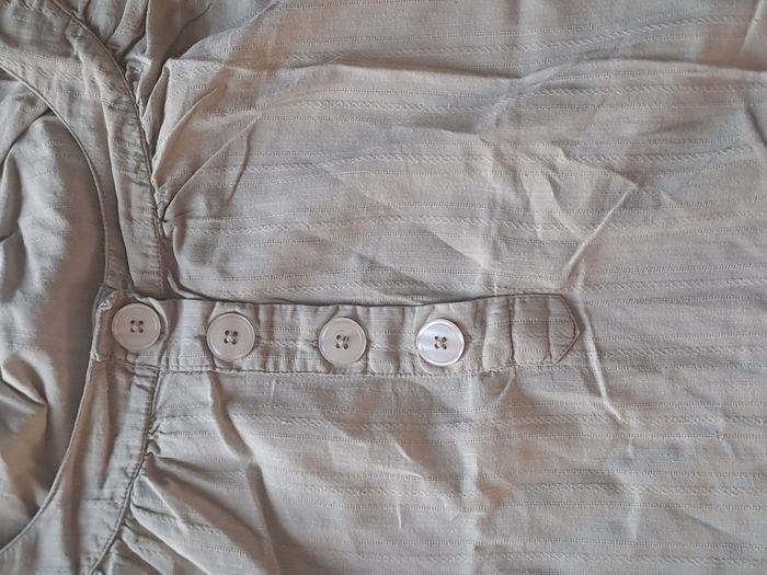 Blouse Manches 3/4 Col rond avec boutons 100% Coton ⚠️ une petite tâche sur une manche (voir photo) Couleur Beige Taille 42 Pas d'étiquette de marque