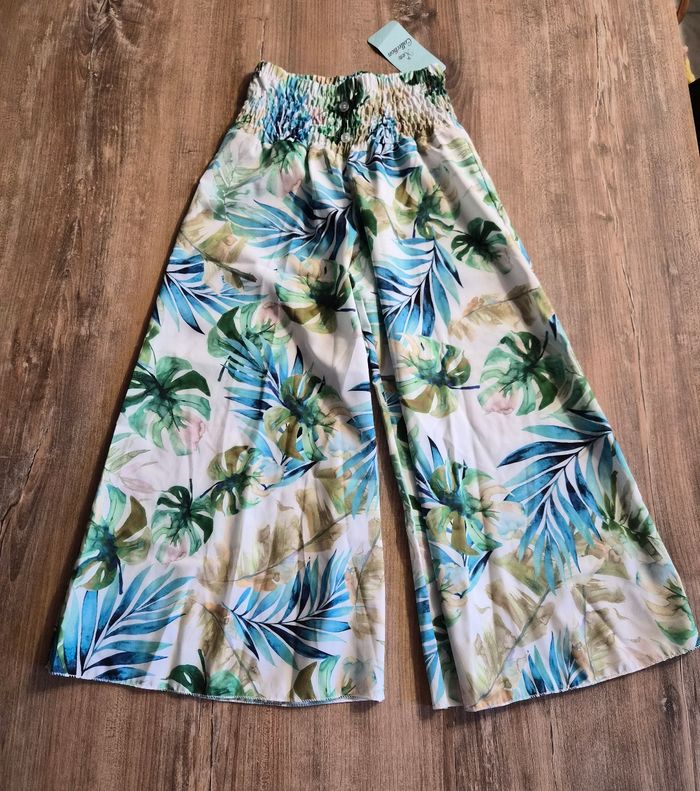 Superbe palazzo avec taille smockée Large et fluide Joli imprimé tropical #fille8anstattoogirl_3