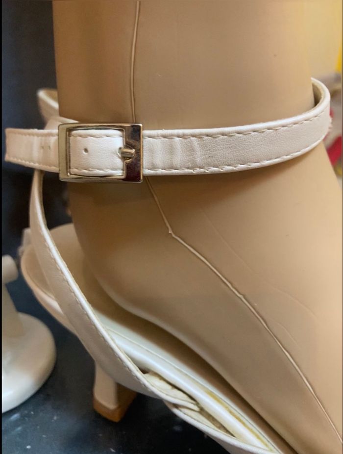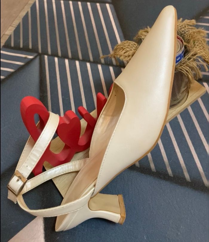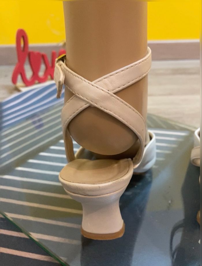 Colis soigné jolies escarpins de mariage 🎨 ivoire Taille 38 En bon état général, même si la semelle est légèrement frottée (mais on n'ira pas vérifier sous vos pieds Une légère griffure sur la pointe (en dessous) mais ne se voit pas) Boucle d'attache à la cheville (5 points de réglage) Croisé à l'arrière du talon Hauteur de talon 6 cm Très joli modèle 🚨remise sur lot activée ✨envoi rapide et soigné