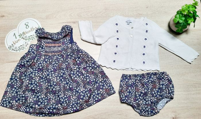 Superbe ensemble de chez Sergent Major taille 18mois Très bon état Collection printemps-été 2023 Thème Cérémonie 3 pièces ✨️ robe doublé voile imprimé floral sur fond violet, volants épaules et jolies finitions, fermeture dos intégral par boutons fantaisie Très bon état 18mois ✨️ gilet blanc cassé brodé fleurs violettes finition dentelé sur le bas et les poignées (légère tache voir photo) 18mois ✨️ bloomer imprimé floral assorti très bon état 18mois #auroretltbebefille18mois Réductions actives 💯