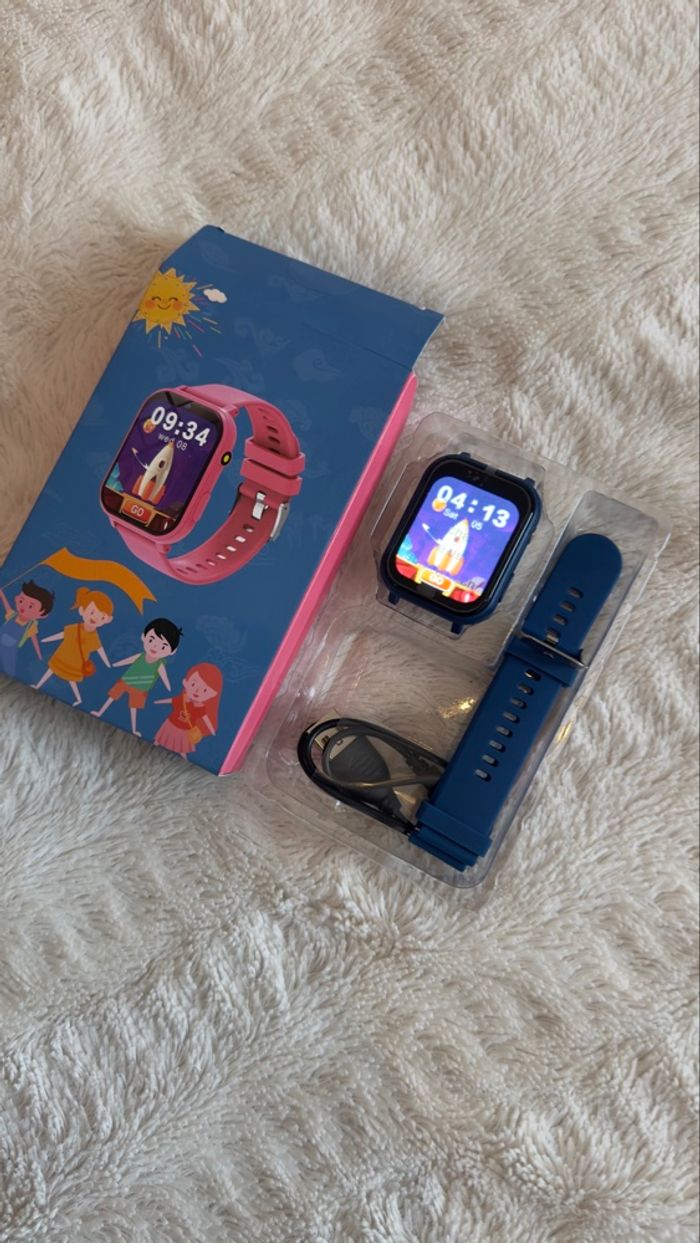 Montre enfant, neuve jamais utilisée, dans son emballage d’origine, film de protection de l’écran intact (non enlevé) Bracelet bleu
