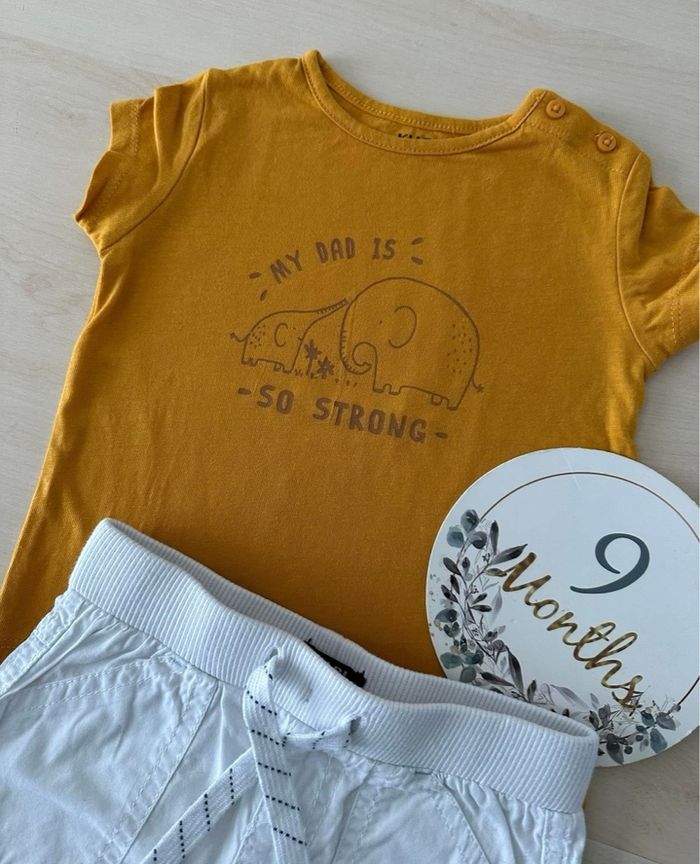 1 short Kiabi 1 t-shirt Kiabi • taille 9 mois 71 cm Marque Kiabi 📦 envoi rapide et soigné Privilégiez mondial relais pour un envoi plus rapide