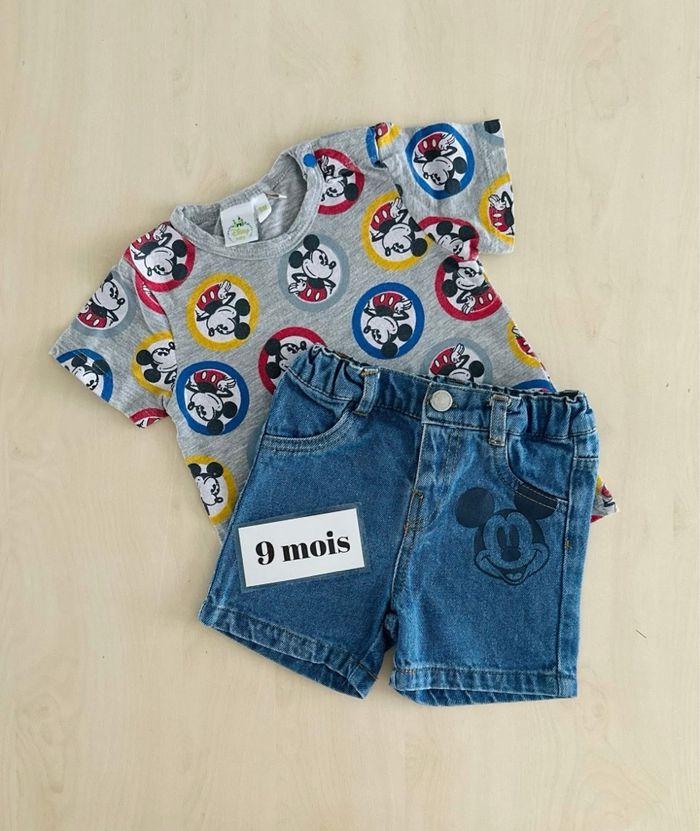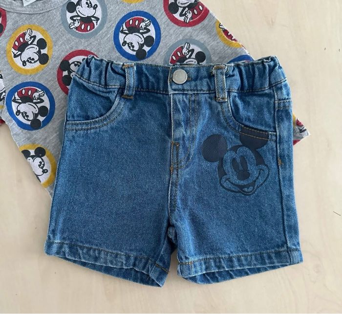 1 short en jeans Mickey taché 1 t-shirt d’occasion Mickey • taille 9 mois 71 cm 📦 envoi rapide et soigné Privilégiez mondial relais pour un envoi plus rapide
