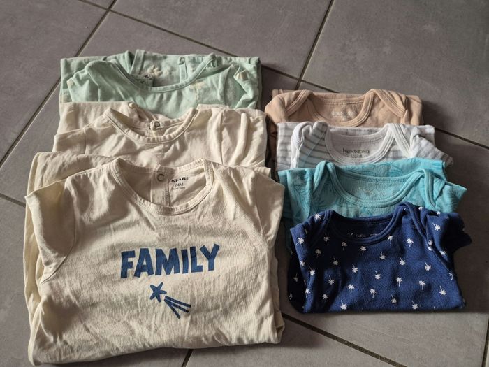 Lot de 4 pyjama et 4 body Les pyjama taille 23 mois orchestra très bon etat. Les body 18 mois kiabi et inextenso en bon etat. Pas de tâches ni de trou. Maison non fumeur sans animaux.