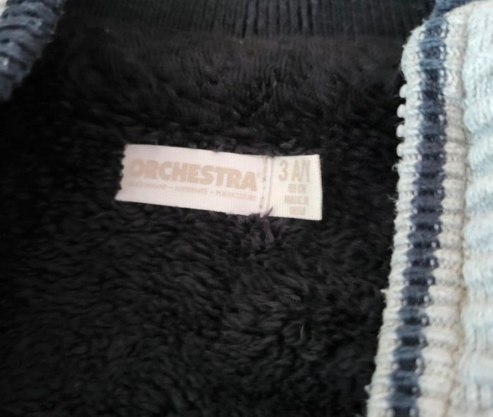 Gilet zippé, taille 3 ans de Orchestra. Rembourré polaire, donc tient chaud. Etat irréprochable car peu porté
