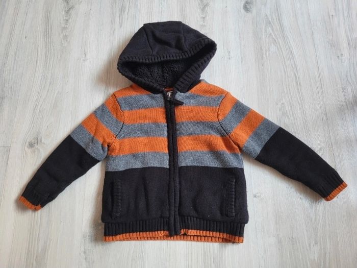 Gilet zippé, à capuche, taille 3 ans de Orchestra. Porté mais toujours en très bon état général, malgré quelques bouloches faciles à retirer