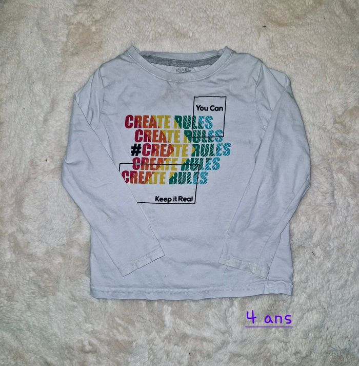 T-shirt manches longues garçon taille 4 ans en bon état pour 1 euro. ⚠️ quelques tâches visibles sur la photo