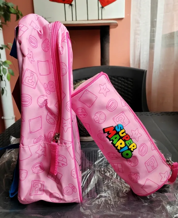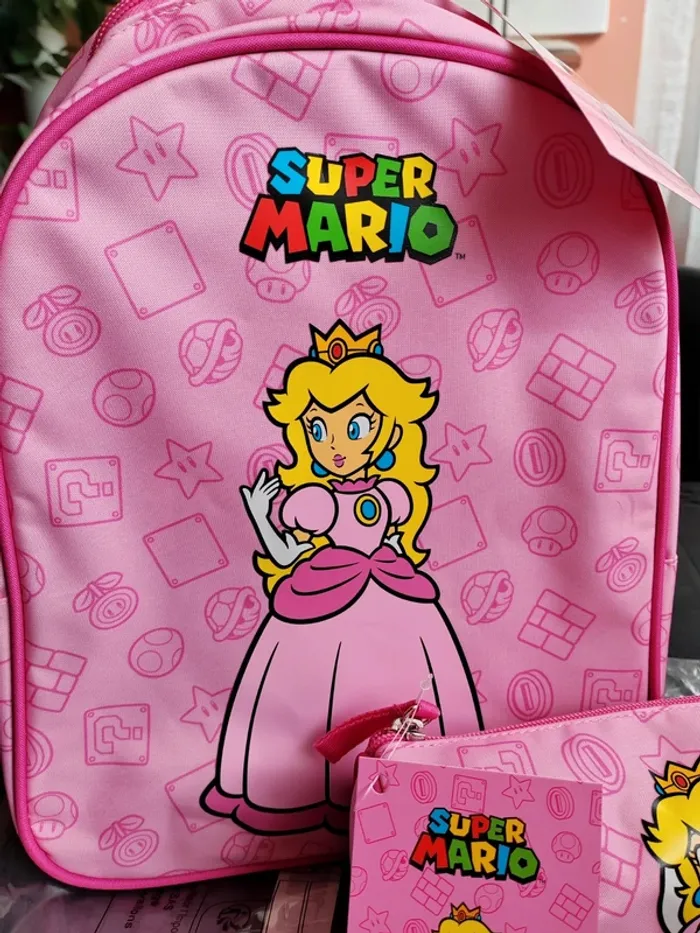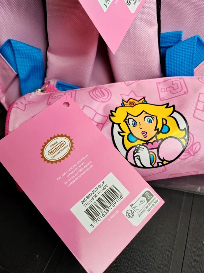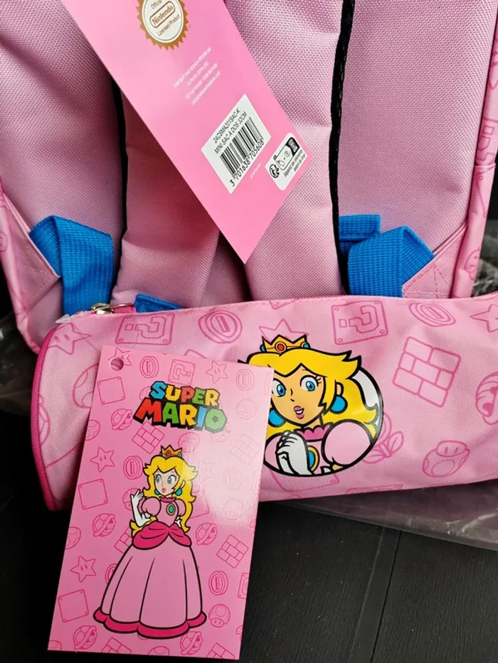 Sac à dos + Grande trousse Princesse Peach / Super Mario Nintendo licence Officielle L'ensemble est neuf avec étiquette Envoi rapide et soigné