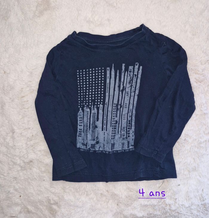 T-shirt manches longues garçon taille 4 ans en très bon état pour 2 euros.