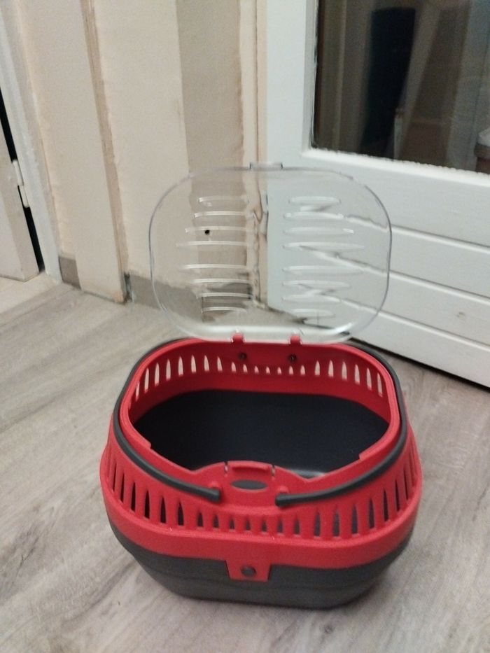 Caisse transport rongeurs type gerbille, hamster, cochon d'inde ou petit lapin Couleur framboise et gris foncé Utilisée 2 fois et a été lavée Remise en mains propres sur Marseille Saint Just ou centre, ou envoi en point relais rapidement
