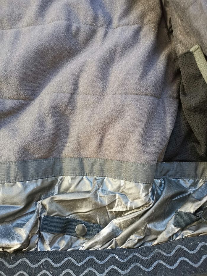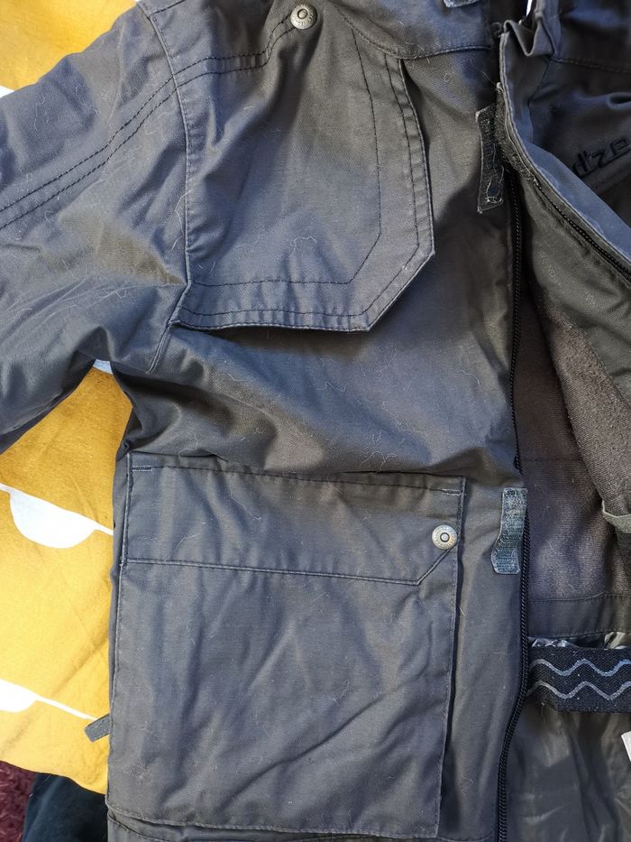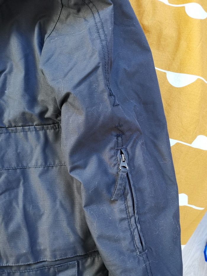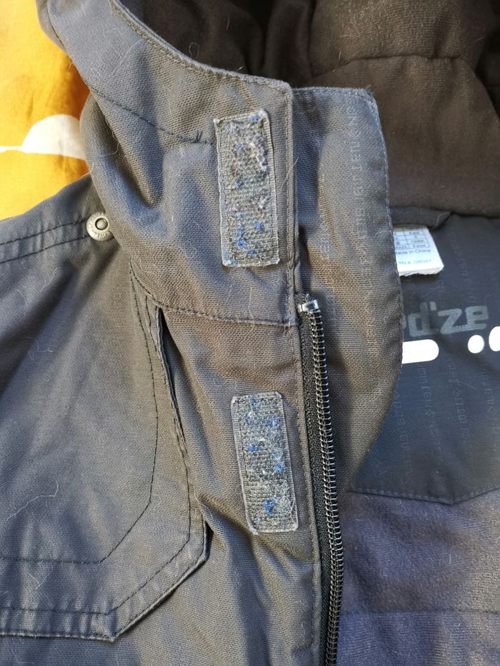 Veste de sli pour enfant 6 ans Wed'ze de Decathlon, 114/121 cm La bonne couleur gris foncé correspond aux 2 premières photos Manteau en très bon état général, chaud, pas de trou, mais la jupe de protection a bien vécu. Voir les dernières photos Elle n'est pas déchirée, mais a perdu sz couleur Il y a un peu de fibres dans les scratchs C'est pour cela que je note bon état Le manteau protège bien Je vends également des leggings et t-shirts thermiques en 6 ans