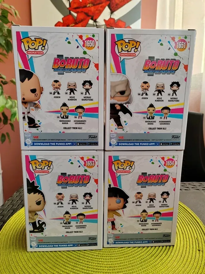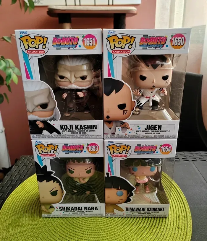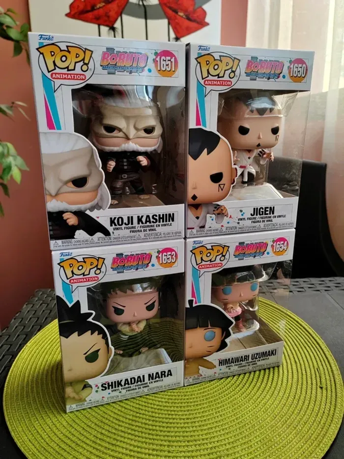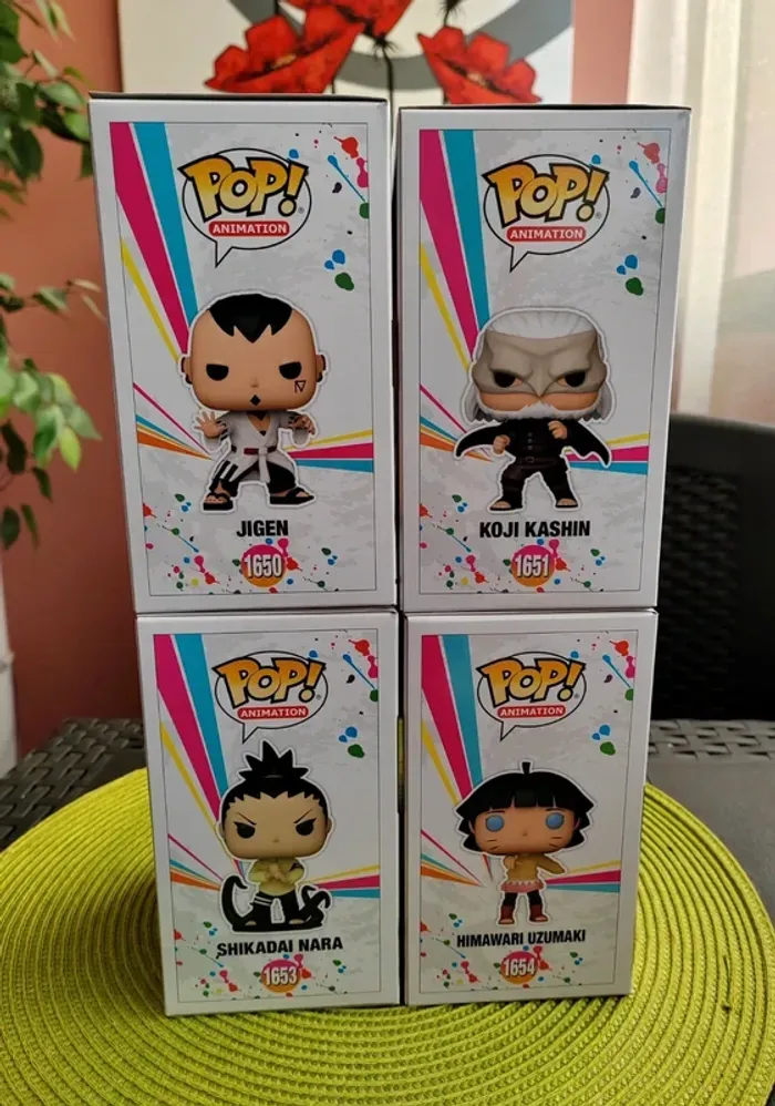 Lot de 4 figurines Funko Pop Collection : Boruto, Naruto next generations - Jigen n°1650 - Koji Kashin n° 1651 - Shikadai Nara n°1653 - Himawari Uzumaki n°1654 Les 4 figurines sont neuves Envoi rapide et soigné