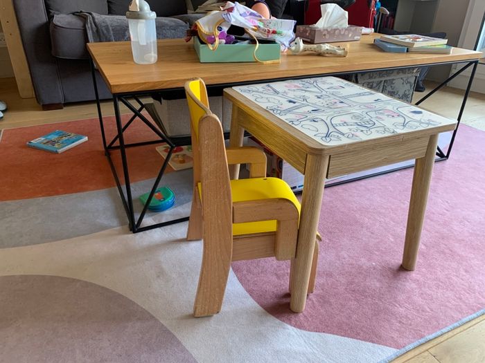 Deux tables d’appoint neuves jamais montées encore dans leur emballage d’origine Revente suite commande reçue en double. Couleur bois dimension grande table: L. 45 x l. 45 x H. 45 cm => peut aussi servir pour petit table pour enfant de 2 ans. dimension petite table: L. 40 x l. 34 x H. 37 cm => peut aussi servir pour petit table pour enfant de 1 an En dernière photo c’est celle que j’ai en double actuellement pour ma petite. Envoi ou sinon à récupérer à mon domicile Paris Montparnasse Pasteur