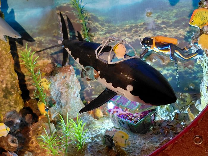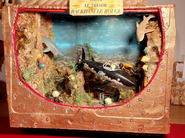 Diorama Tintin du trésor de Rackam le Rouge réalisation unique h33 ×l47×p22