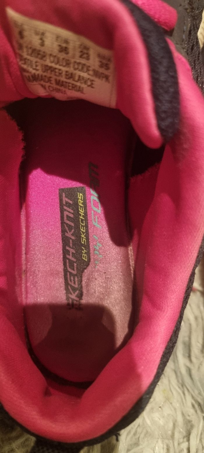 Chaussures de sport Skechers. Portées mais encore en très bon état. Taille petit. Semelle intérieure à mémoire de forme.