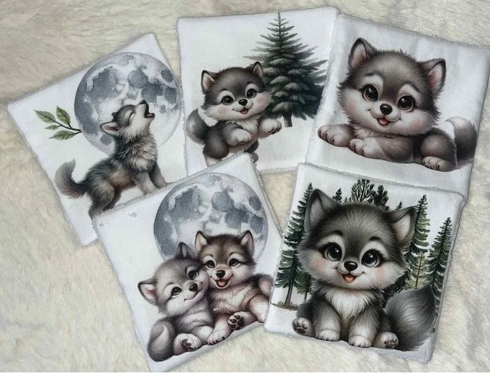 5 lingettes lavables loups
