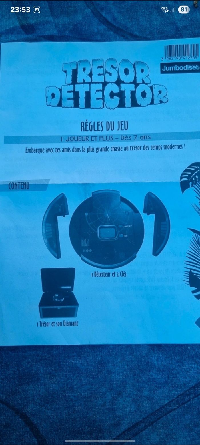 Jeu Trésor detector. Complet. L'étiquette du coffre est légèrement abîmée.