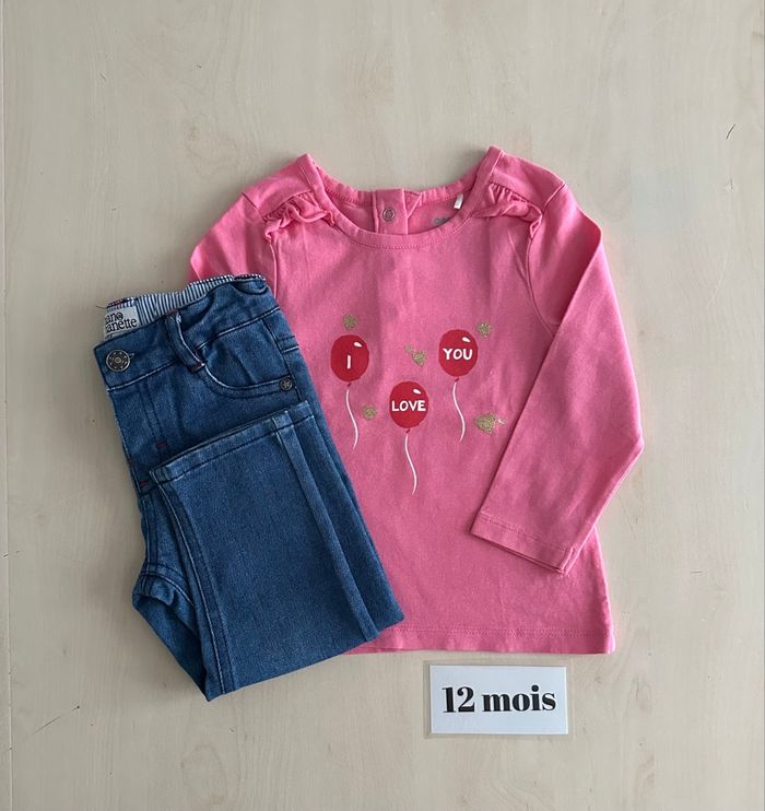 Bon état Aucune tachée 1 jeans bleu 1 haut orchestra manche longue • taille 12 mois 74 cm 📦 envoi plus rapide par mondial relais