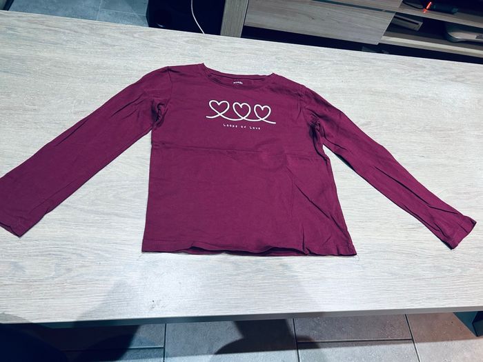 Teeshirt manches longues bordeaux motifs cœurs 8 ans  - photo numéro 1