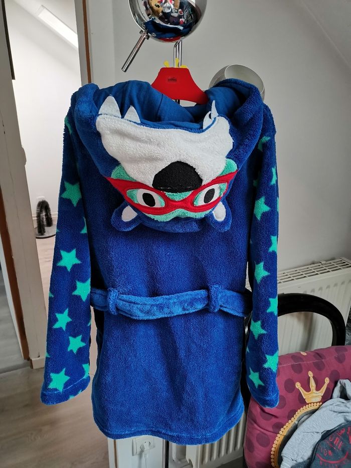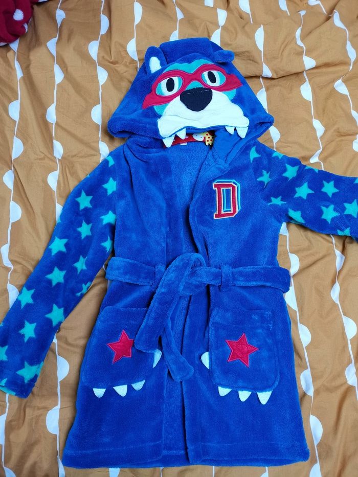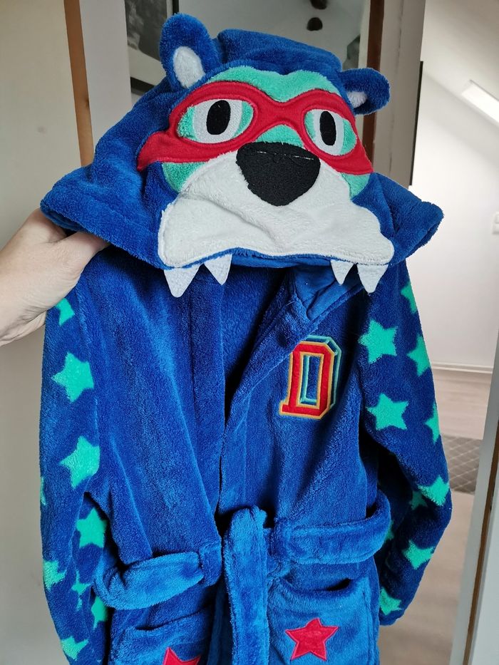 Très joli peignoir polaire DPAM, en super état, taille 6 /8 ans, 128 cm Motif ours super héros, les poches représentent les pattes Excellente qualité, tout doux et tout chaud