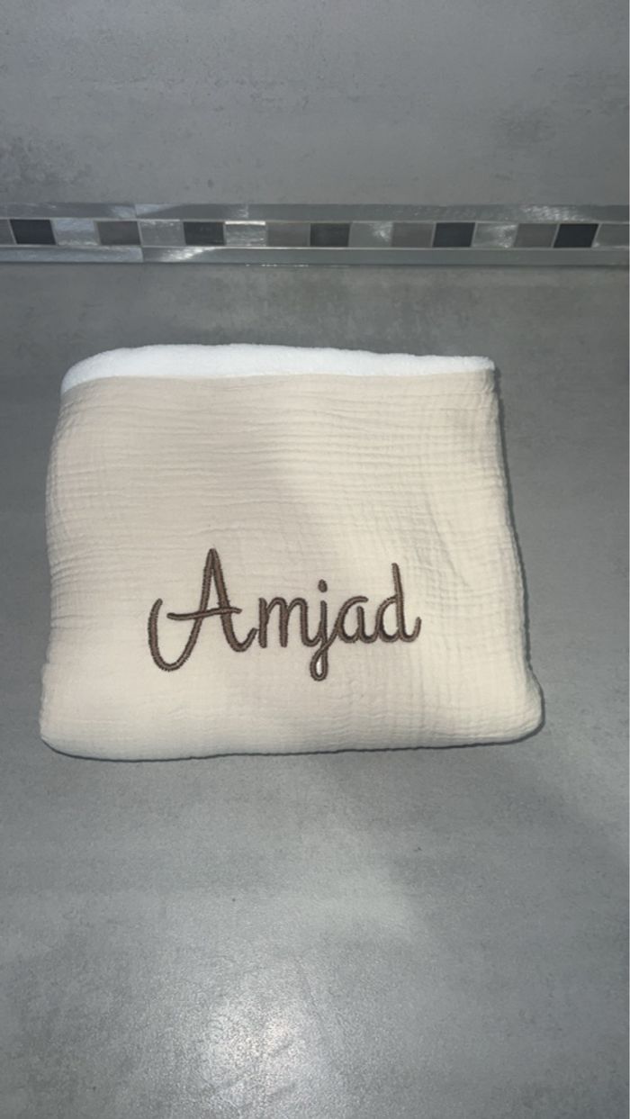 Offrez un cadeau unique et plein de douceur avec cette couverture bébé personnalisée, idéale dès la naissance. Confectionnée en gaze de coton et doublée de polaire toute douce, elle accompagnera bébé au quotidien : siestes, promenades, moments cocooning… La couverture est personnalisée par broderie avec le prénom de votre choix, pour un souvenir précieux et intemporel. ⸻ ✨ Détails du produit • 🧵 Personnalisation par broderie • ✍️ Prénom brodé dans la police et la couleur de votre choix • 📍 Emplacement de la broderie au choix : • en haut • en bas • au milieu • sur le côté 👉 Merci de m’indiquer votre préférence lors de la commande 👉 Sans précision, le prénom sera brodé en haut au milieu • Il est également possible de broder un petit cœur en dessous du prénom, si vous en souhaitez un veuillez le préciser s’il vous plaît. • 🎨 Plusieurs coloris disponibles • 📐 Dimensions : environ 90 x 90 cm • 🧼 Entretien facile (lavage doux recommandé) ⸻ 🤍 Pourquoi vous allez l’adorer ✔ Ultra douce et chaude grâce à la doublure polaire ✔ Personnalisation soignée et durable ✔ Taille idéale pour bébé (lit, poussette, cosy) ✔ Fabrication artisanale avec amour ⸻ 🎁 Une idée cadeau parfaite Cette couverture personnalisée est idéale comme : • 🎀 Cadeau de naissance • 🎉 Cadeau de baby shower • 🎂 Cadeau d’anniversaire bébé • 💝 Ou simplement pour faire plaisir à votre propre bébé Un cadeau utile, unique et rempli d’émotion 💫 ⸻ • couverture bébé • couverture bébé personnalisée • couverture naissance • cadeau naissance personnalisé • couverture brodée bébé • couverture bébé polaire • gaze de coton bébé • plaid bébé personnalisé • cadeau baby shower • cadeau bébé fait main • prénom brodé bébé • couverture bébé douce • cadeau bébé unique