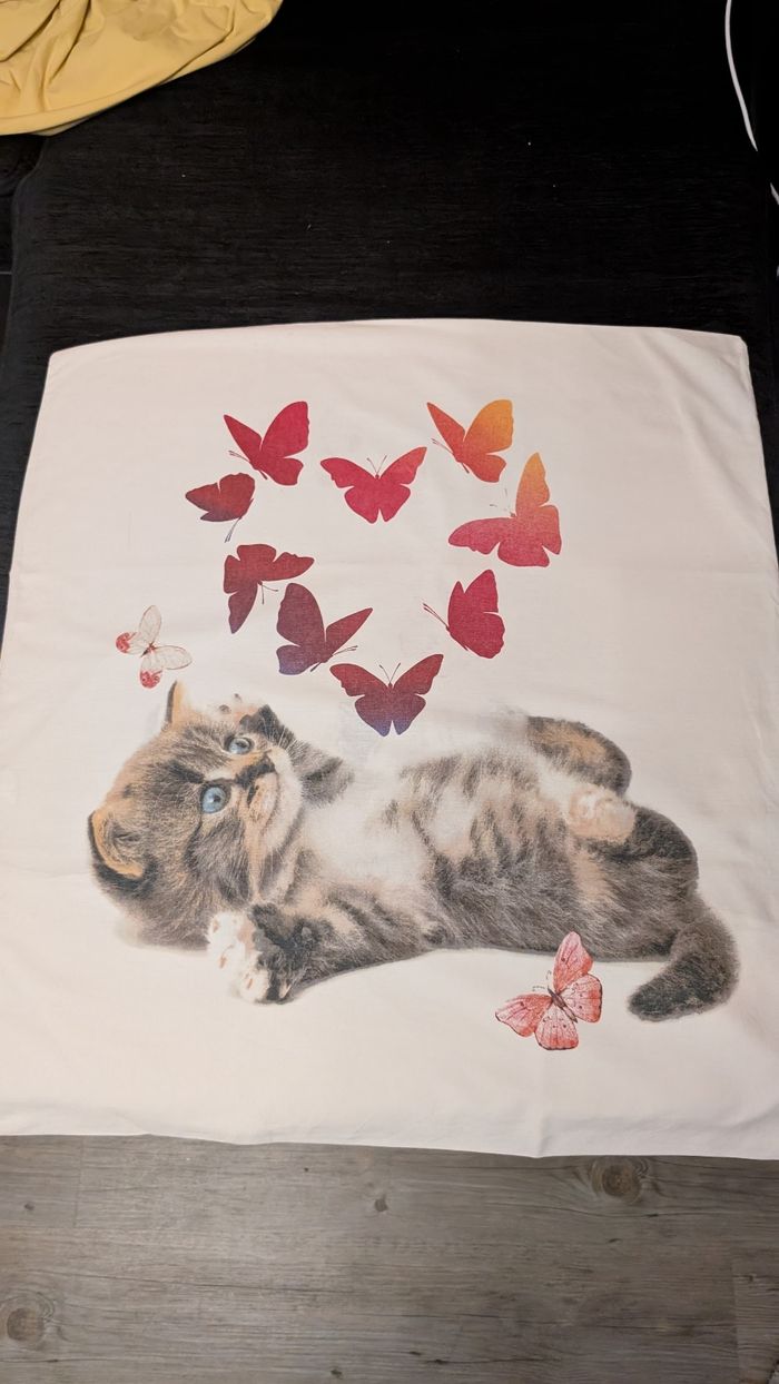 Pas abîmée avec un chat et avec taie d'oreiller assortie Si vous êtes intéressé aussi par la housse couette fées, je peux vous vendre les 2 à 9 €