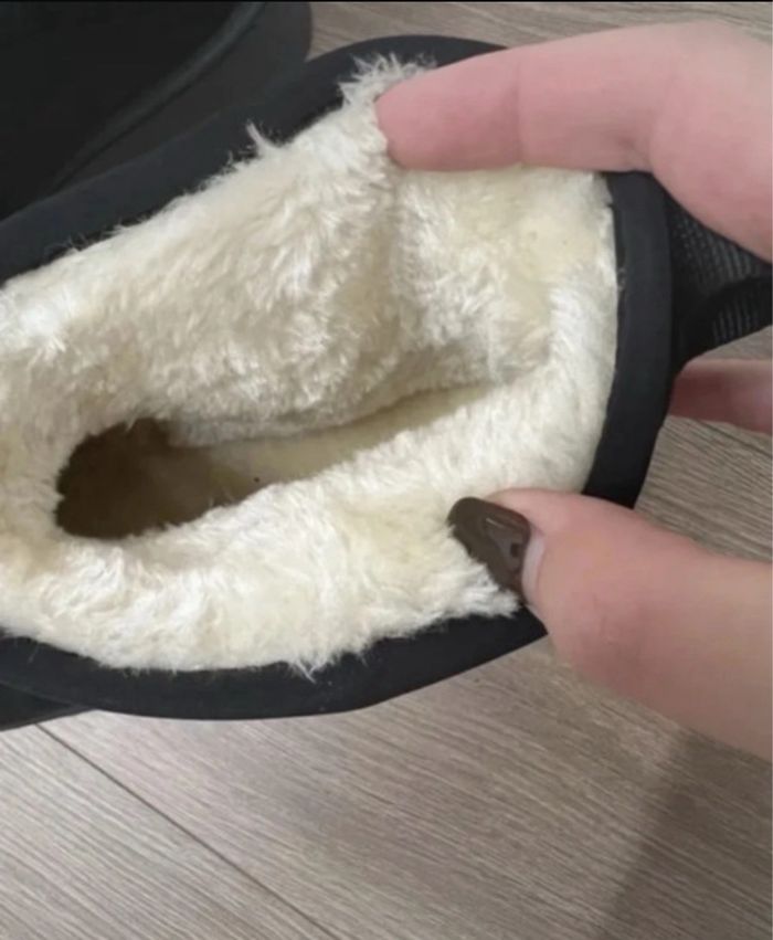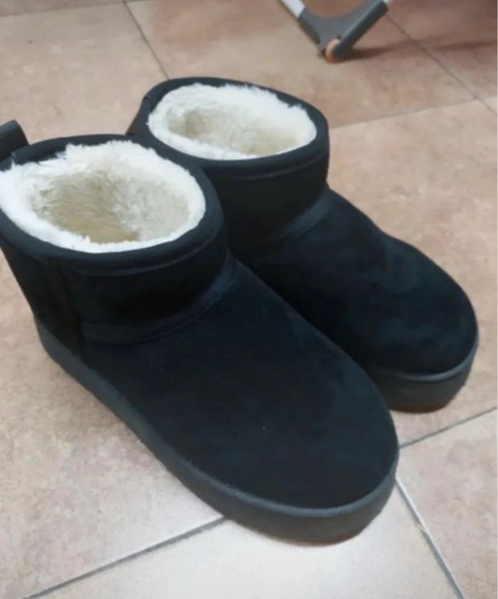 Bottines courtes noire Intérieur fausse fourrure crème et ultra-douillet Extérieur Simili-daim noir Semelle plateforme épaisse Taille 38