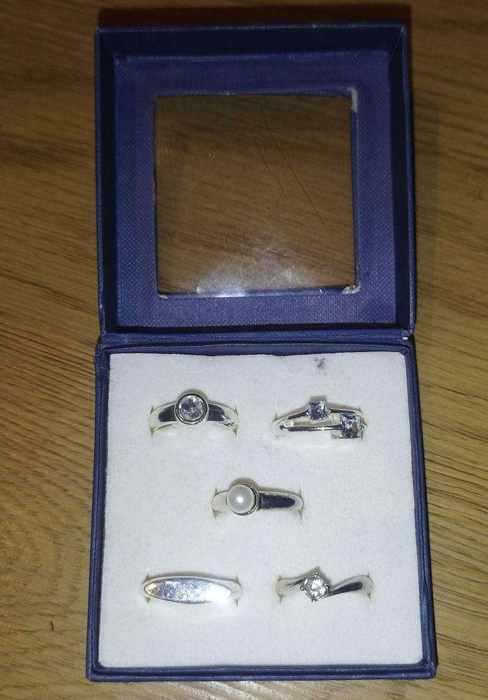 Lot de différentes bagues argentées assorties Réglables Fourni avec la boîte
