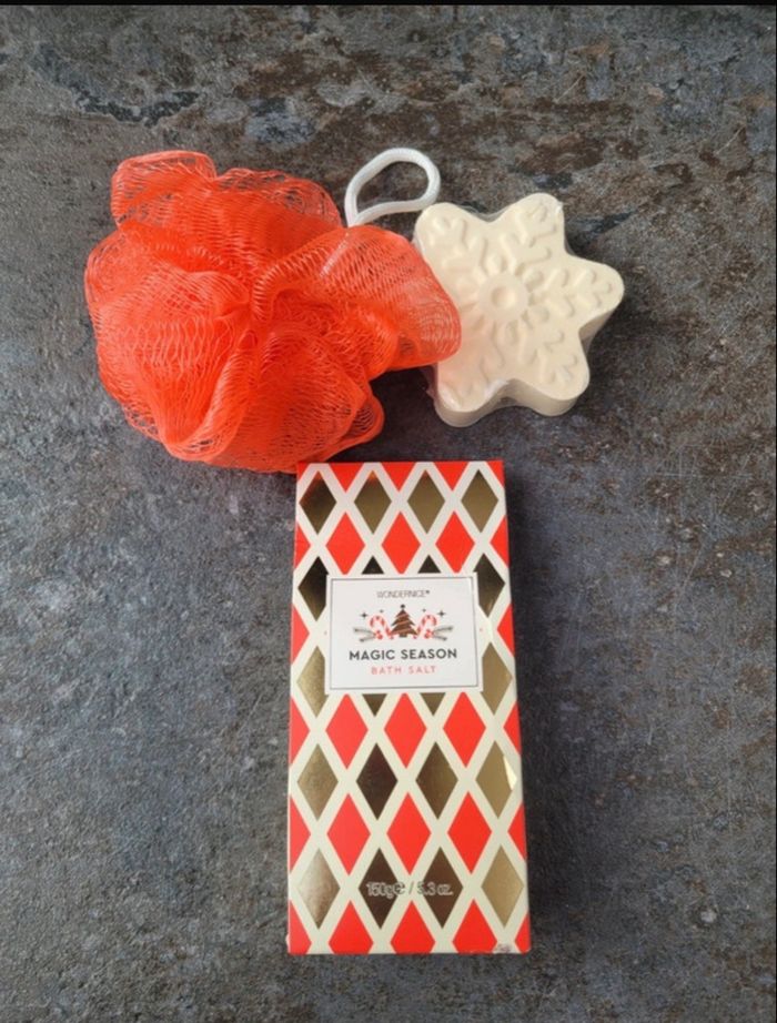 Lot de 3 produits pour le bain Neuf Une fleur de douche Des sel de bain Un galet effervescent