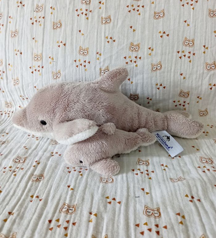 Peluche doudou Dauphin Et Son Bébé Marineland Côte D'Azur. Très bon état 31 cm 14 cm (bébé) 📮 Envoi rapide et soigné