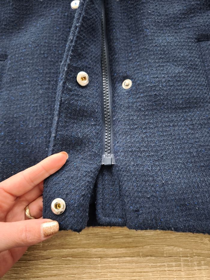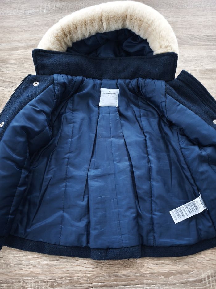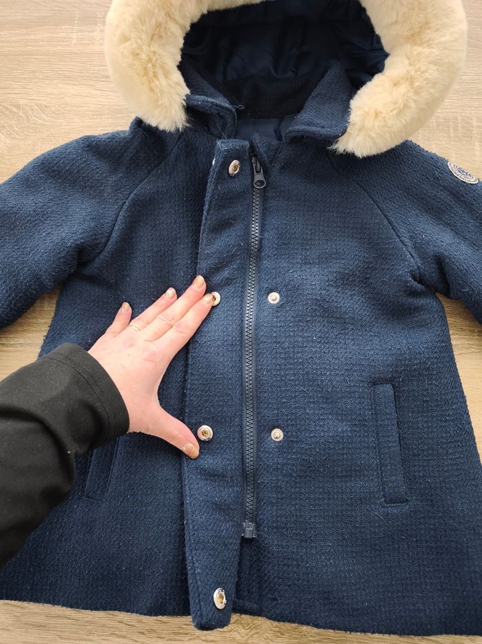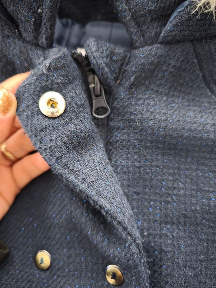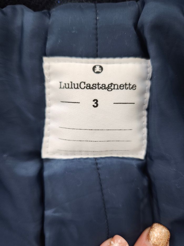 Manteau Lulu Castagnette bleu marine avec "paillettes" bleu électrique Taille : 3 ans En bon état (manque 2 pressions cf photo)